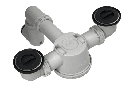 Sifón para piletas con descarga doble, diseñado para adaptarse a diversas configuraciones de cocina. Incluye tres prolongadores y sopapas con fijación segura a las descargas de las bachas. Su diseño de descarga rápida y codo con ajuste de tornillo asegura un cierre estanco y sin fugas.